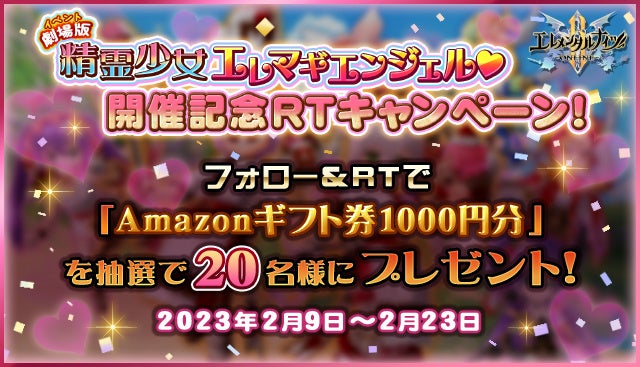 エレメンタルナイツオンラインRの公式Twitterアカウントをフォローして、期間中の対象ツイートをリツイートしてくれた方の中から、Amazonギフト券1000円分を抽選で20名様にプレゼント!