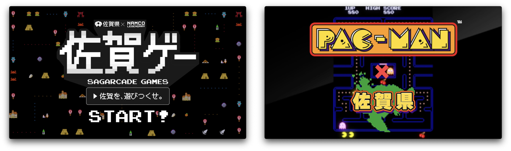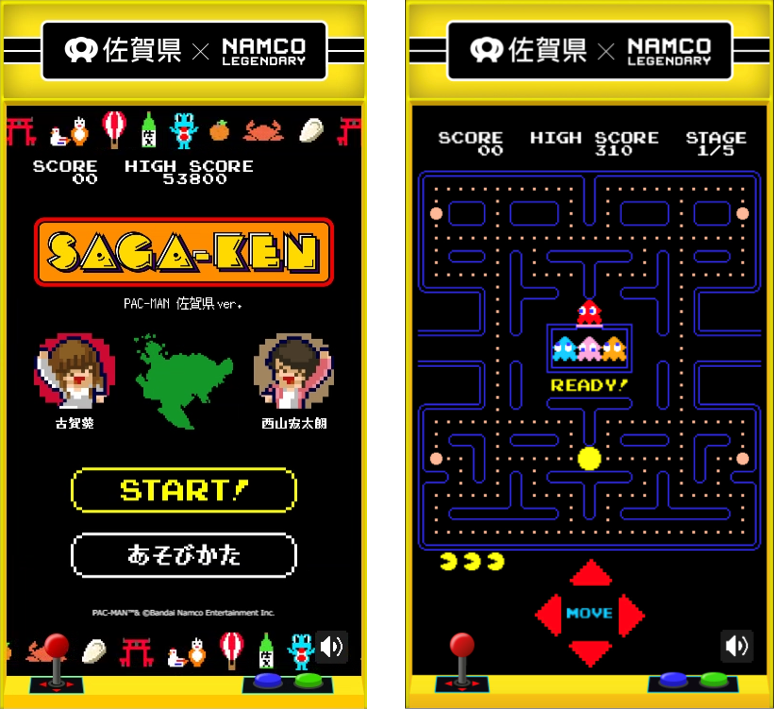 「佐賀ゲー」プロジェクトの目玉企画は、「最も成功したアーケードマシン」としてギネス記録を持ち、日本を代表するゲーム・キャラクターとして世界中の人から愛されている「パックマン」とのコラボゲーム。誰でも無料でプレイでき、パックマンの世界に、佐賀県の観光地や特産品などが登場します。