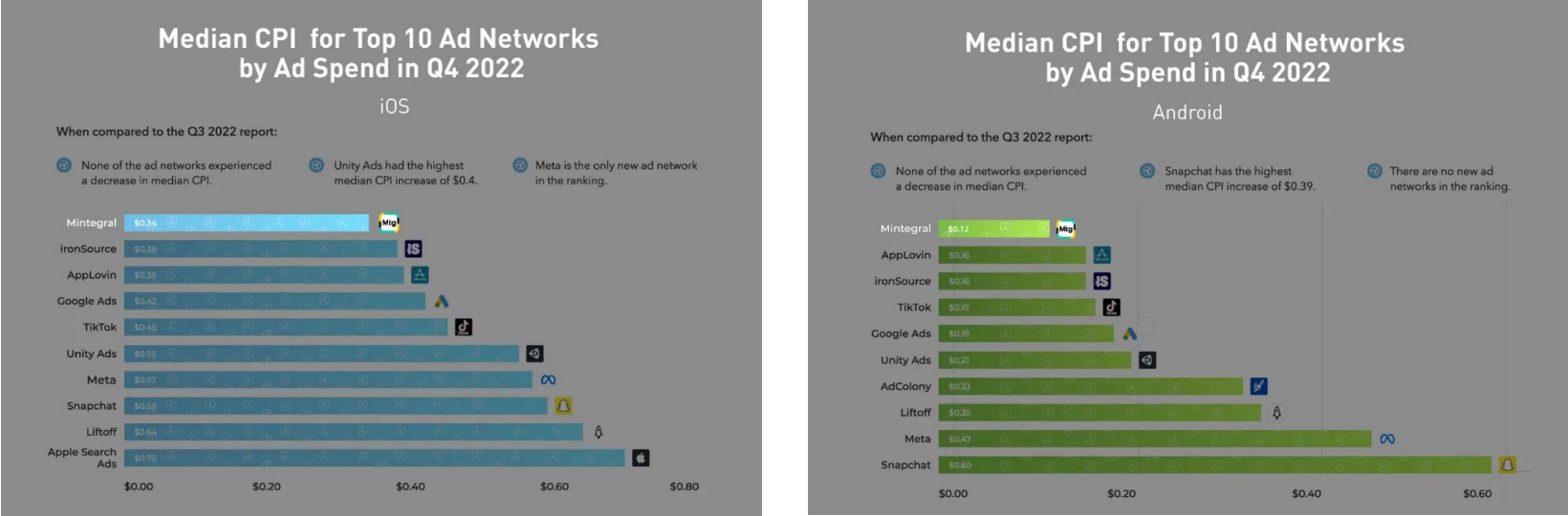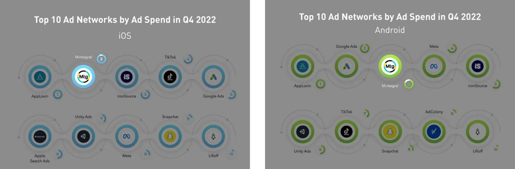 MintegralはTenjin第4四半期レポートで両プラットフォームのCPIで最も優位性があり、各項目で上位3位以内を独占しています。Smadexと提携開始し、クライアントに最高のモバイル広告ソリューションを提供することに取り組んでいます。