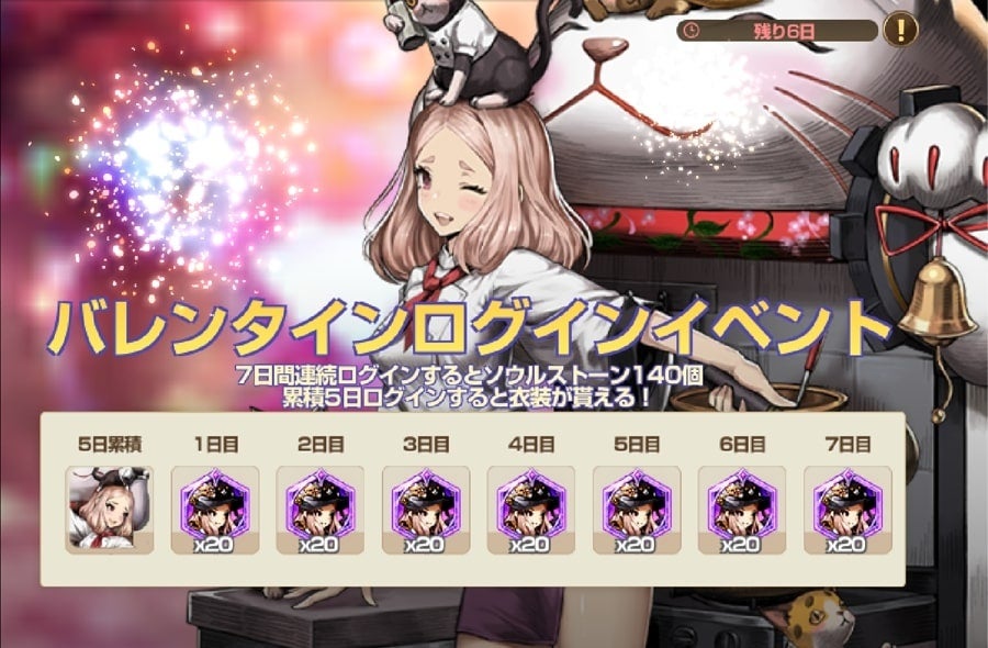 連続7日間ログインすると[バートリー]ソウルストーンを140個獲得できます。