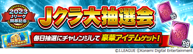 また抽選で「G89以上ガチャ券」などのアイテムが獲得できる「2023Jリーグ開幕記念!Jクラ大抽選会」も開催!