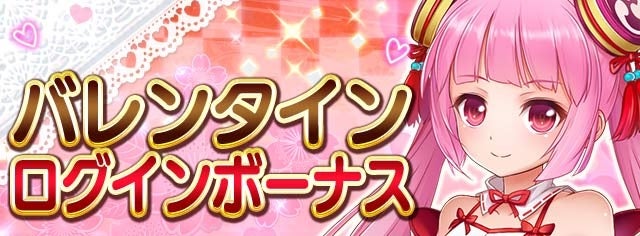 2/14(火)12:00から始まるバレンタインログインボーナスにて、イベントガチャ券もらえる♪ 最大15回分のガチャを無料で引けるチャンスなので毎日ログインしよう☆