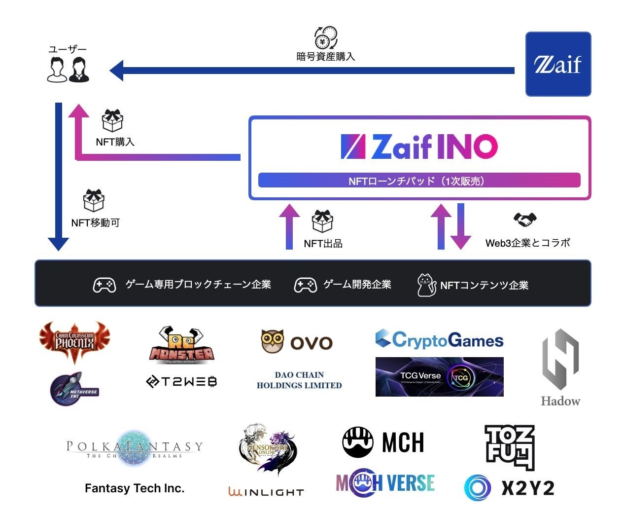 当該「Zaif INO」ローンチパッド(1次販売)では、様々なWeb3企業とのコラボレーションを予定しています。NFTを出品するゲーム開発企業など、決定次第、発表してまいります。