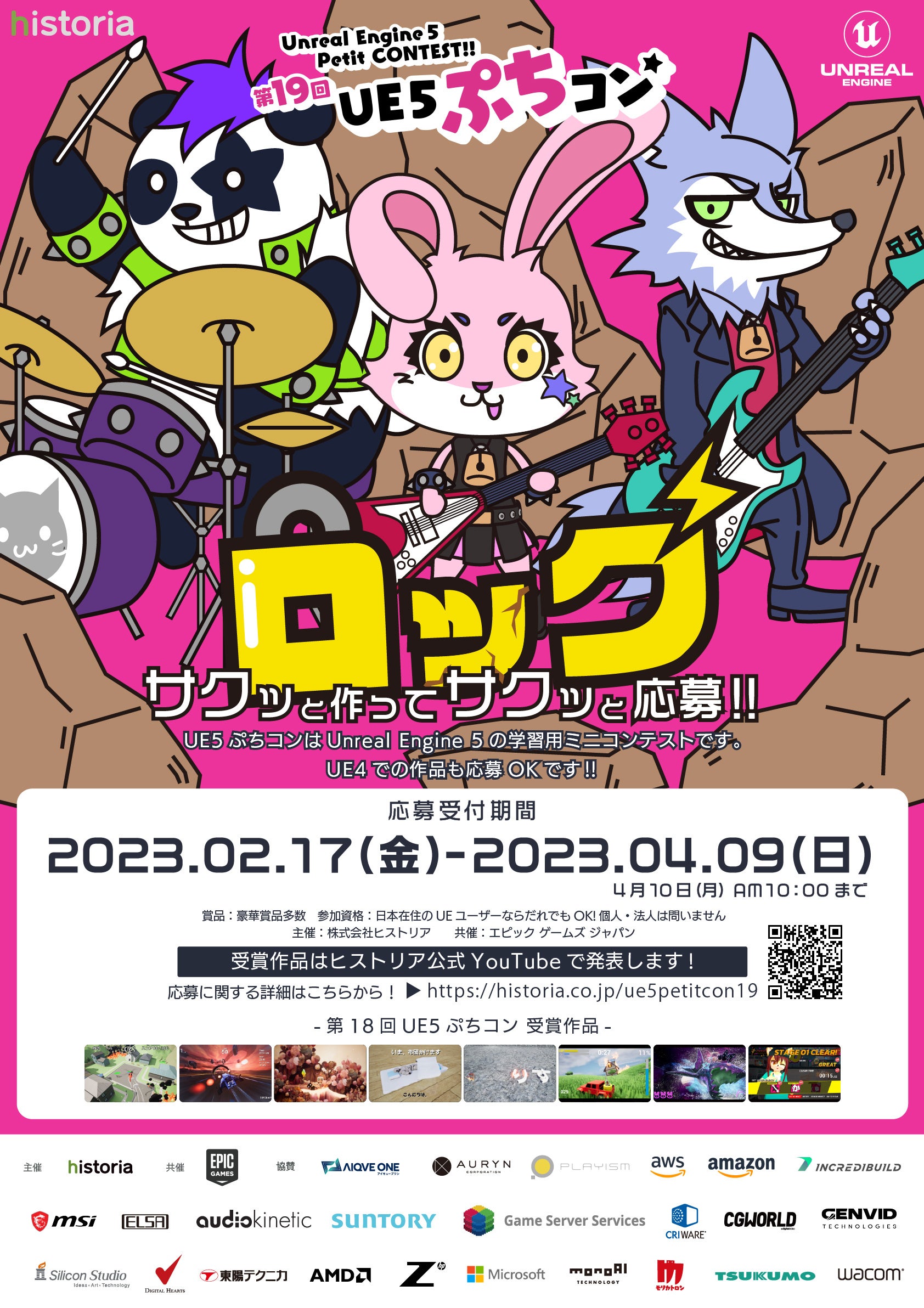 Unreal Engine専門のソフトウェア開発会社 株式会社ヒストリア(代表:佐々木瞬 本社所在地:東京都品川区)が主催するUnreal Engine学習向けミニコンテスト”第19回UE5ぷちコン”のテーマを「ロック」と発表、作品エントリー受付を開始いたしました。2023年2月17日(金)~2023年4月9日(日)の期間内に作品エントリーを受け付けております。