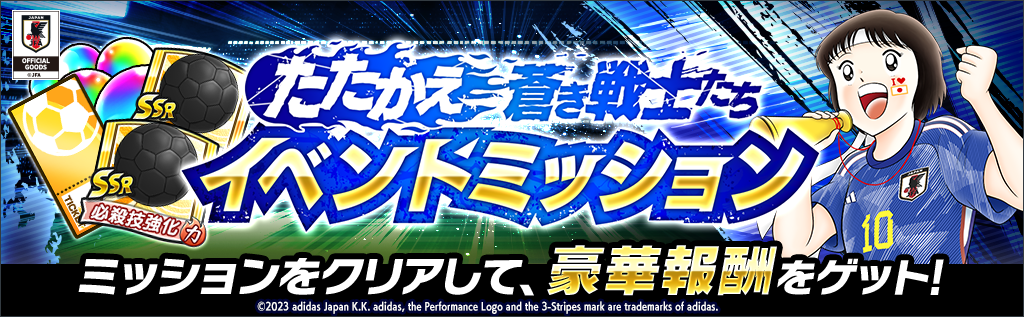 KLab株式会社(本社:東京都港区、代表取締役社長:森田英克、以下「KLab」)が提供するスマートフォン向け対戦型サッカーシミュレーションゲーム『キャプテン翼 ~たたかえドリームチーム~』では、本日2月17日よりサッカー日本代表公式アウェイユニフォームを着用した岬 太郎、立花 政夫、立花 和夫が新選手で登場する「たたかえ蒼き戦士たち サッカー日本代表ガチャ」などを開催いたします。