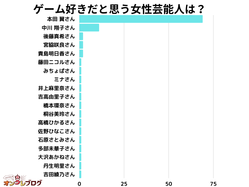 「ゲーム好きだと思う女性芸能人は誰ですか?」とアンケート調査した結果、1位は『本田翼さん』でした。
