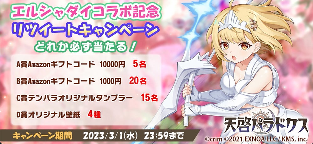 「天啓パラドクス」と「エルシャダイ」のコラボを記念してAmazonギフト券のコードやオリジナルタンブラー 、オリジナル壁紙のいずれかが必ず当たる超豪華なRTキャンペーンを開催!