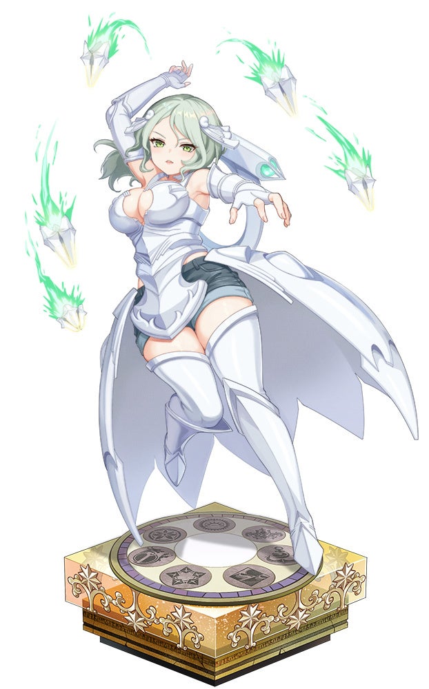 範囲内の敵全てに威力390%の風属性物理ダメージを与え、2マス以内のなかま全ての攻撃力・精神力を上げ(効果3ターン)、自分に回避を付与する(回避率100%) (効果2ターン)。クールターン数:1 ※スキル最大強化時の効果
