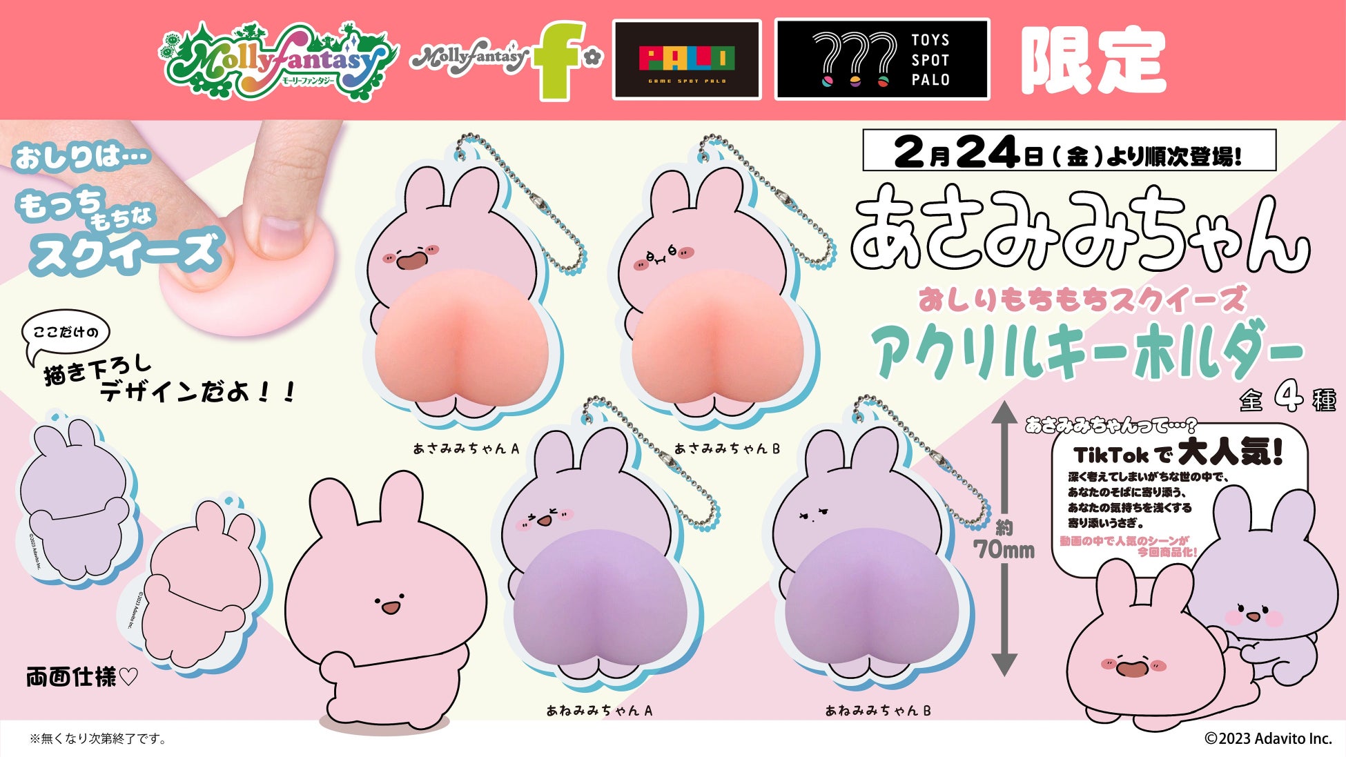 景品:あさみみちゃん おしりもちもちスクイーズアクリルキーホルダー 全4種