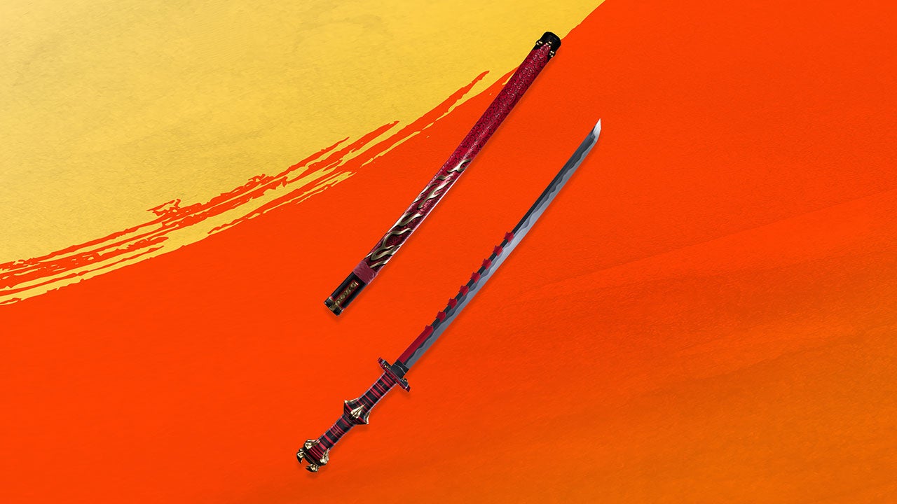白を基調とした雅な一本。酒を求めると言われる怪しい一振り。ヒートゲージが溜まりやすく、酒を飲めばさらにその効果が高まります。