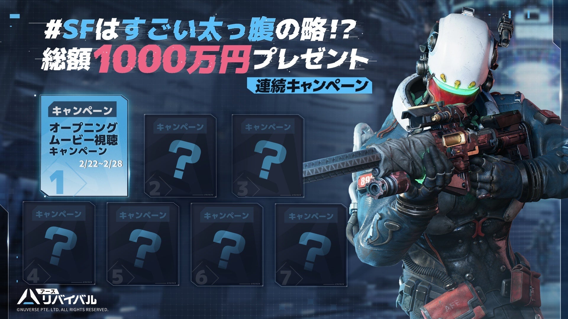 内容:アスリバ公式Twitterにて、事前登録開始から正式サービス開始まで、大型連続キャンペーン企画「#SFはすごい太っ腹の略!?」を開催!全7つのキャンペーンで構成され、総額1,000万円分の豪華プレゼントが抽選で当たります!