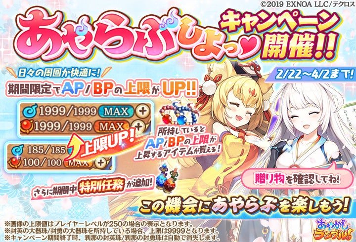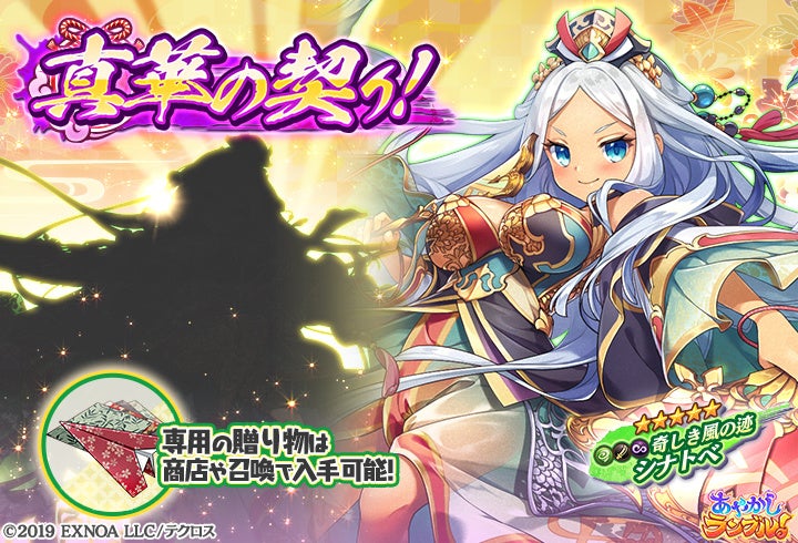 合同会社EXNOA(本社:東京都港区、CEO:村中 悠介、URL:https://games.dmm.com/)が運営するDMM GAMESにおいて、あやかし美少女たちと冒険する、迎撃型爽快スキルバトルRPG『あやかしランブル!』(https://ayarabu.jp/)は、2月22日に、「真華の契り」の対象式神に「★5 シナトベ」を追加しました!