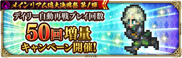 期間中、デイリー自動再戦プレイ回数が50回増量され、最大100回再戦可能になります。