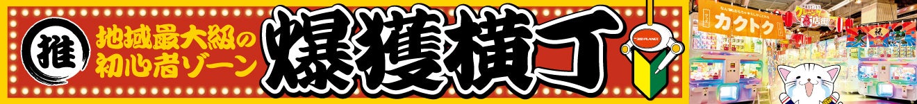 クレーンゲームコーナーは様々なお店が立ち並ぶ商店街をイメージした『クレーンゲーム商店街』で構成。初心者さん必見の『爆獲横丁(ばくとれよこちょう)』では、お客様にワクワクを体験していただきたく、獲れるヨロコビ追求中!