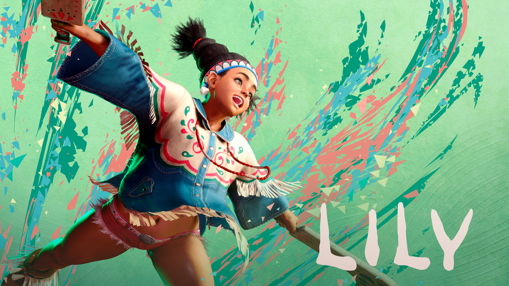 スト6で初登場となる「リリー」は、『スーパーストリートファイターII』に登場した「T.ホーク」と同じサンダーフット族の古い血を受け継ぐ少女。自然界に宿る精霊と語らう力を持ち、精霊の導きによって世界を巡る旅に出たリリーは、天真爛漫な姿からは想像もつかない巨大な力を秘めている。