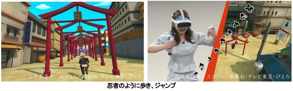*(株)Five forが独自特許を元に考案した機能は、プレイヤーの体のわずかな動きを感知して、歩く、走る、ジャンプするという動きをVR上で再現します。プレイヤーはその場をほとんど動くことなく、VR空間を動き回れます。この最新機能を、世界で初めて NARUTO × BORUTO VR が採用します。