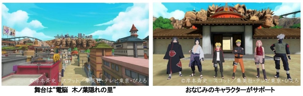 プレイヤーはVRで再現されたナルト達の拠点 “電脳 木ノ葉隠れの里”で忍者の訓練に挑みます。