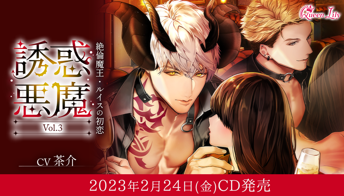 「誘惑悪魔」は、貴女を誘惑する悪魔との非日常的な官能シーンと恋愛がお楽しみいただけるQueen Lilyレーベルの人気シリーズで、2022年6月よりポケットドラマCD Rにて独占配信を行ってまいりました。そしてこの度、本シリーズをより多くの方にお楽しみいただけるよう、CD盤を2月24日(金) に発売いたしました。イラストレーター・北沢きょう氏による美麗イラストを使用したジャケットと合わせて“悪魔との甘く激しい恋”をCDでもお楽しみください。