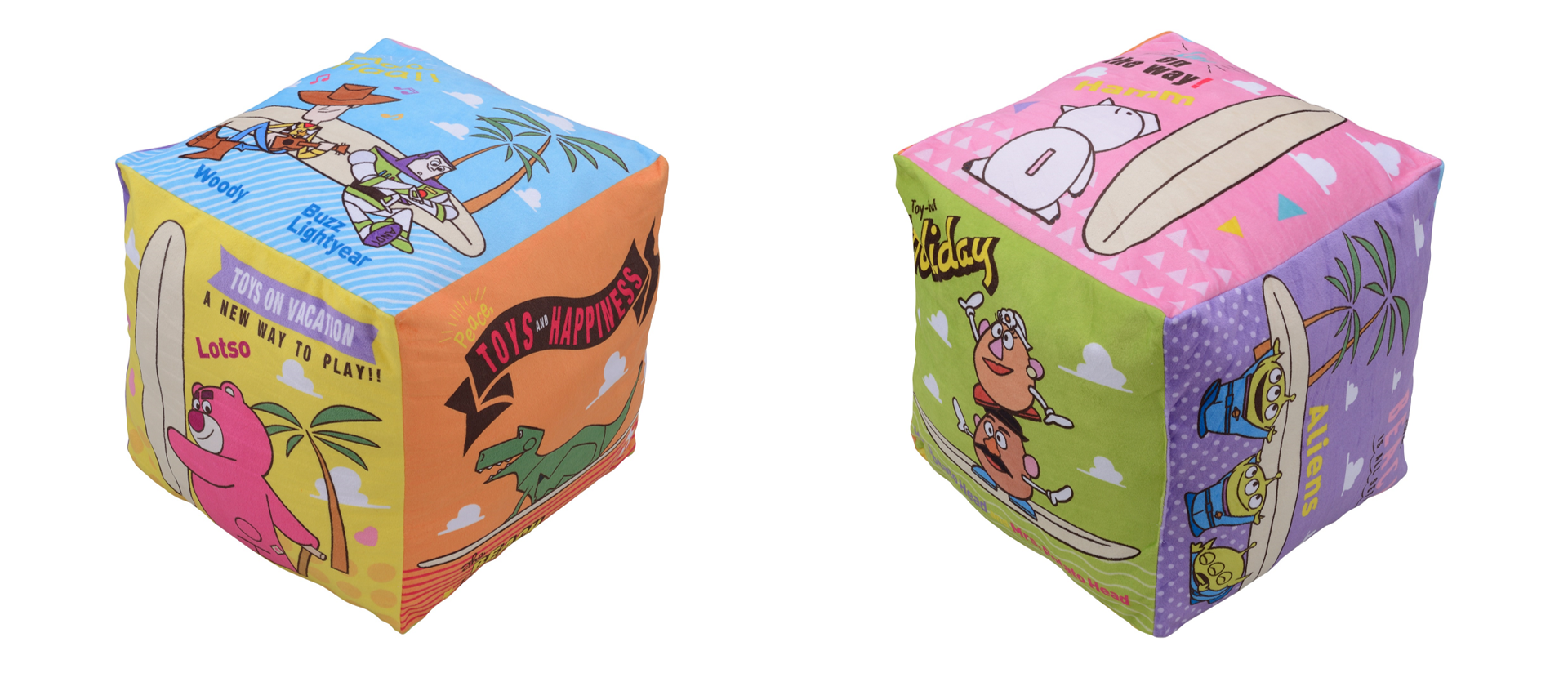 スポーツをテーマにした『トイ・ストーリー』の当社限定プライズゲーム用景品「プレミアムキューブクッション」や「プレミアムビッグバスタオル」、「プレミアムティッシュボックスカバー」、「ロッツォ スペシャルぬいぐるみ サーフィンVer.」、「ハム プレミアムモチーフフラップリュック」、「モアプラスマスコット サーフィンVer.」の6アイテム13種類を展開します。ウッディやボー・ピープがスポーツを楽しむデザインやサーフボードを持ったオリジナルアイテムです。
