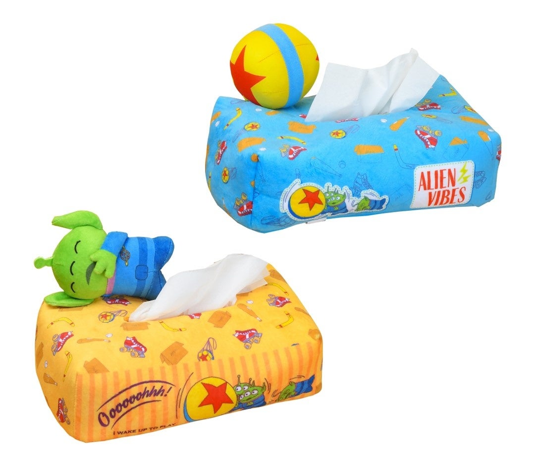 ピクサー・ボールとエイリアンのぬいぐるみが付き、スポーツ用品のアイコンが可愛いティッシュボックスカバー。