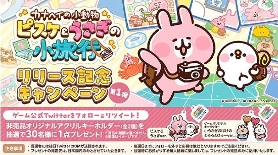 ゲーム『カナヘイの小動物 ピスケ&うさぎの小旅行』のダウンロードと、公式Twitterのフォロー&リツイートにてご参加いただけます。