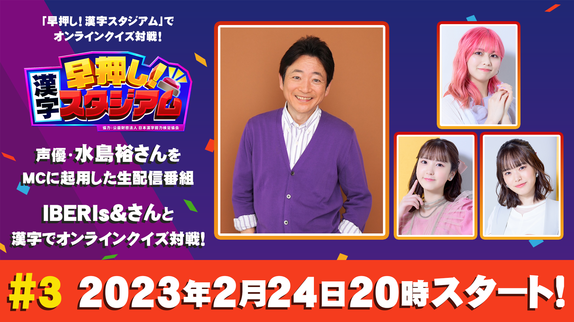 イマジニア株式会社(東京都新宿区、代表取締役社長 兼 CEO 澄岡和憲、以下「当社」)は、配信中の Nintendo Switch™ダウンロード専用ソフト「早押し!漢字スタジアム」(以下「本作」)につきまして、声優の水島裕さんをMCに起用した生配信番組を配信中です。本日第三回の配信を行いますので、お知らせします。