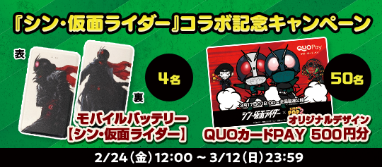 映画『シン・仮面ライダー』コラボ オリジナルデザインQUOカードPay500円分…50名様