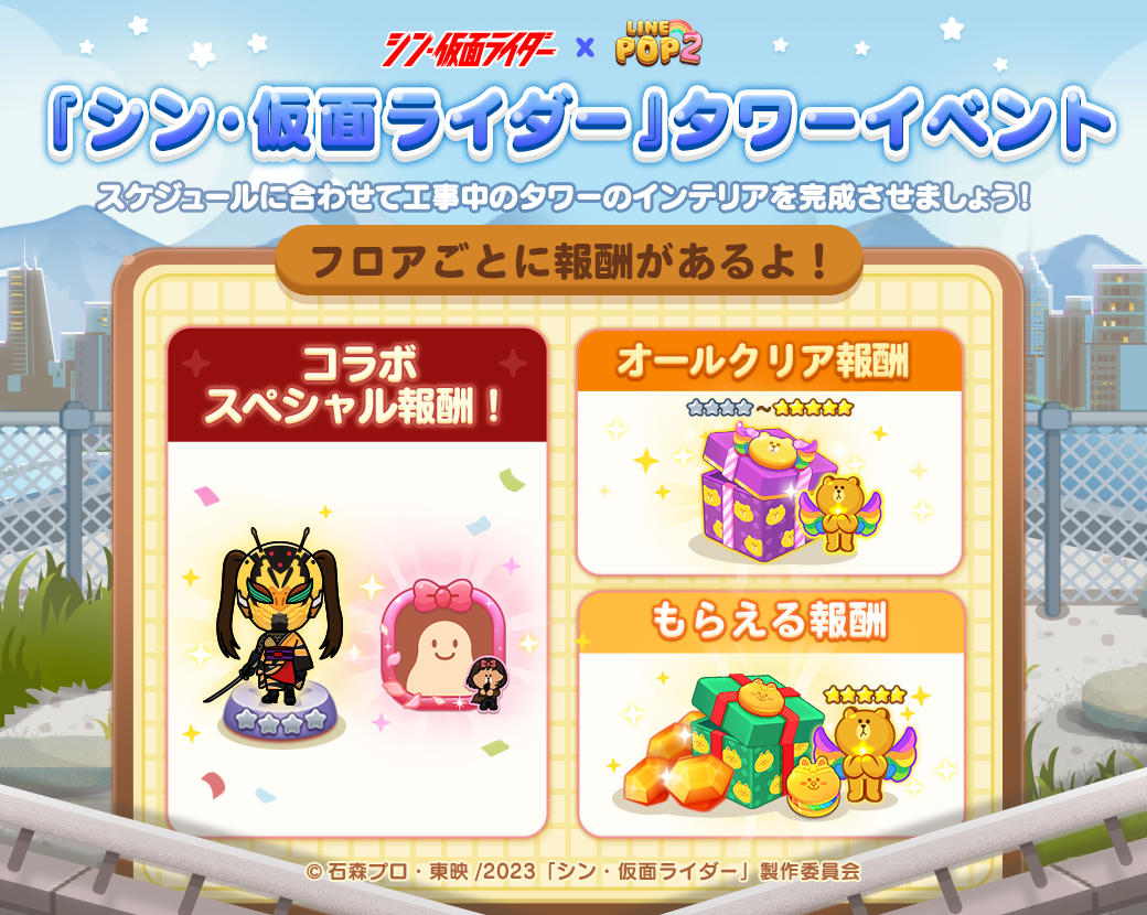 LINE株式会社は、当社が展開する6角形パズルゲーム「LINE POP2」において、本日より映画『シン・仮面ライダー』とコラボレーションを開始しました。