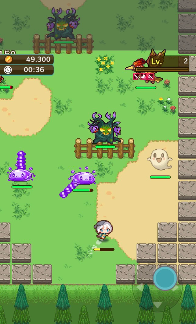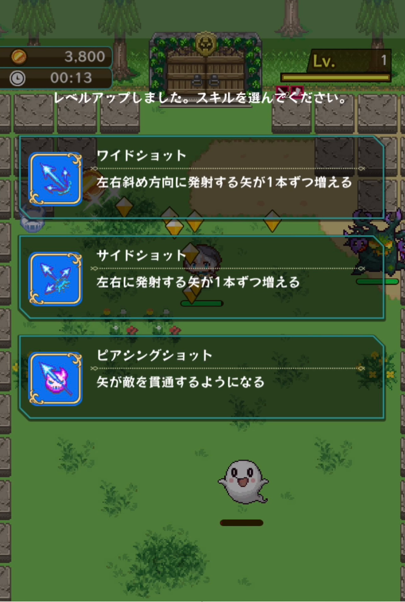 レベルアップしたらスキルを選んでパワーアップ!スキルを駆使して敵をなぎ倒そう!