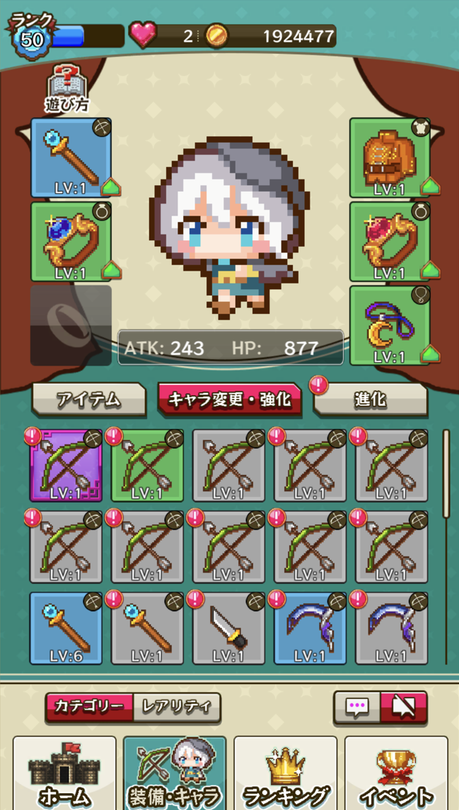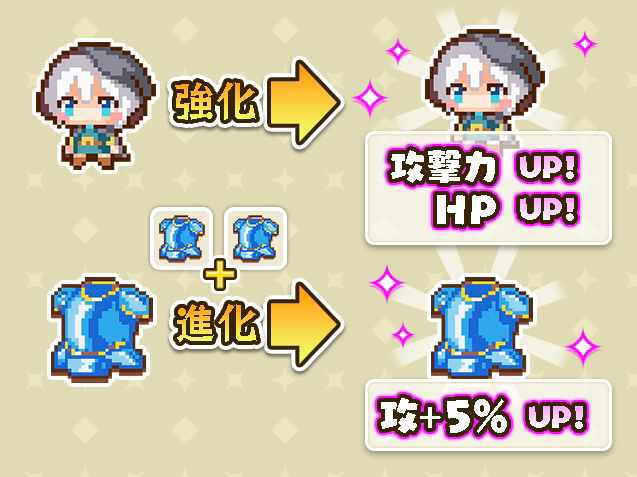 バトルで集めた報酬でパワーアップ!キャラクターや装備を強化して強くなろう!