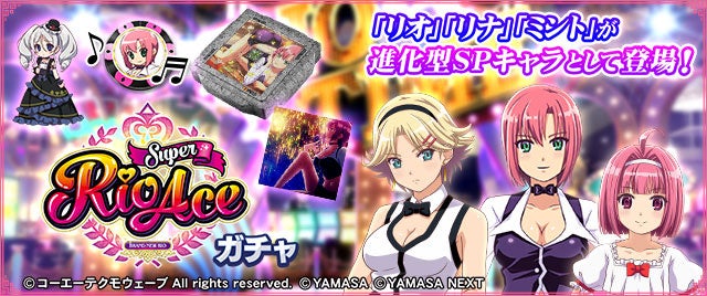 進化型SPキャラ「リオ」をはじめとして、『スーパーリオエース』をイメージした、アガリ演出や卓背景、EX背景などコラボアイテム64種が期間限定で登場します。
