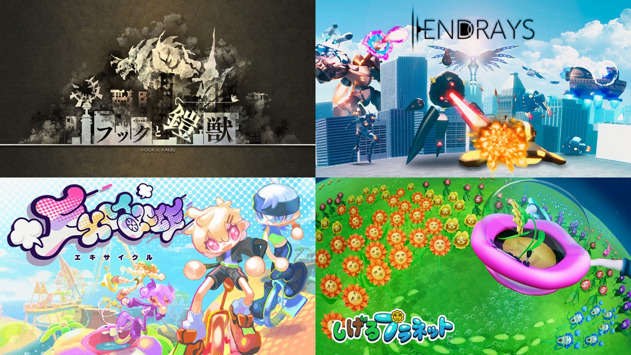 配信開始に先駆けて、『フックと鎧獣』『ENDRAYS』『EXCYCLE』『しげるプラネット』、それぞれのSteamストアページとプロモーションビデオを公開いたしました。各タイトルの配信開始スケジュールは以下の通りです。
