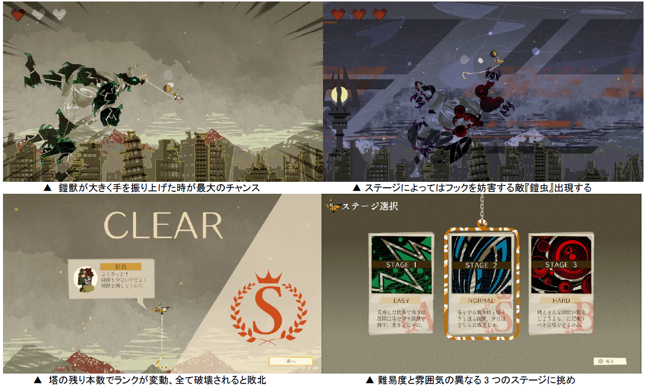 - ①『フックと鎧獣』 -フックで鎧獣を転倒させ、塔を脅威から死守せよ!- ※4月7日 (金) 配信