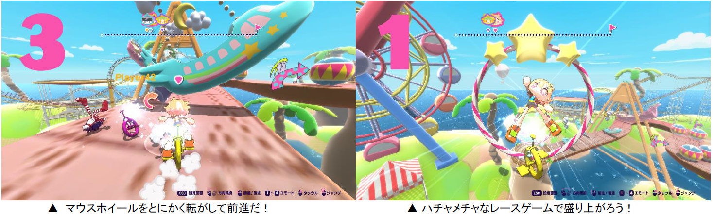 友達との対戦は白熱間違いなし、ギャーギャー騒いで一輪車レースを楽しもう!