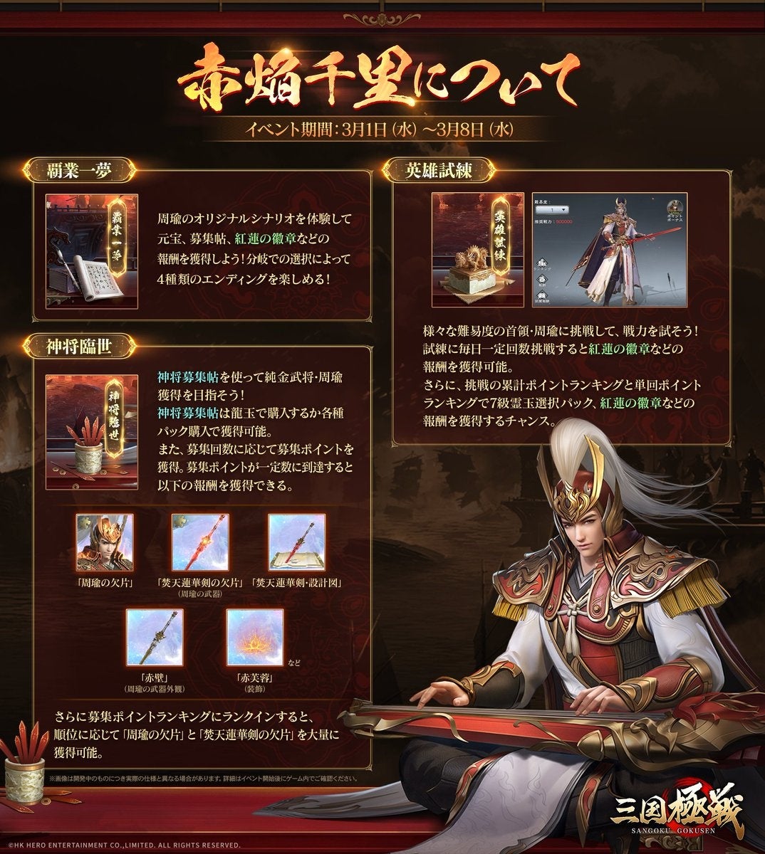 1.新武将「周瑜」登場!期間限定イベント「赤焰千里」を開催
