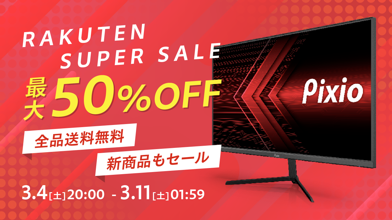 スマートフォングッズの商品開発、及び通販サイトを運営するHamee(ハミィ)株式会社(本社:神奈川県小田原市、代表取締役社長:水島 育大、証券コード:東証プライム3134)は、2023年3月4日(土)~3月11日(土)に楽天市場で開催される「楽天スーパーSALE」にて、ゲーミングモニターブランド「Pixio(ピクシオ)」のゲーミングモニター3機種合計50台を定価より50%OFFで販売します。また、同店で取り扱う全商品を対象に最大20%OFFのセールも実施します。