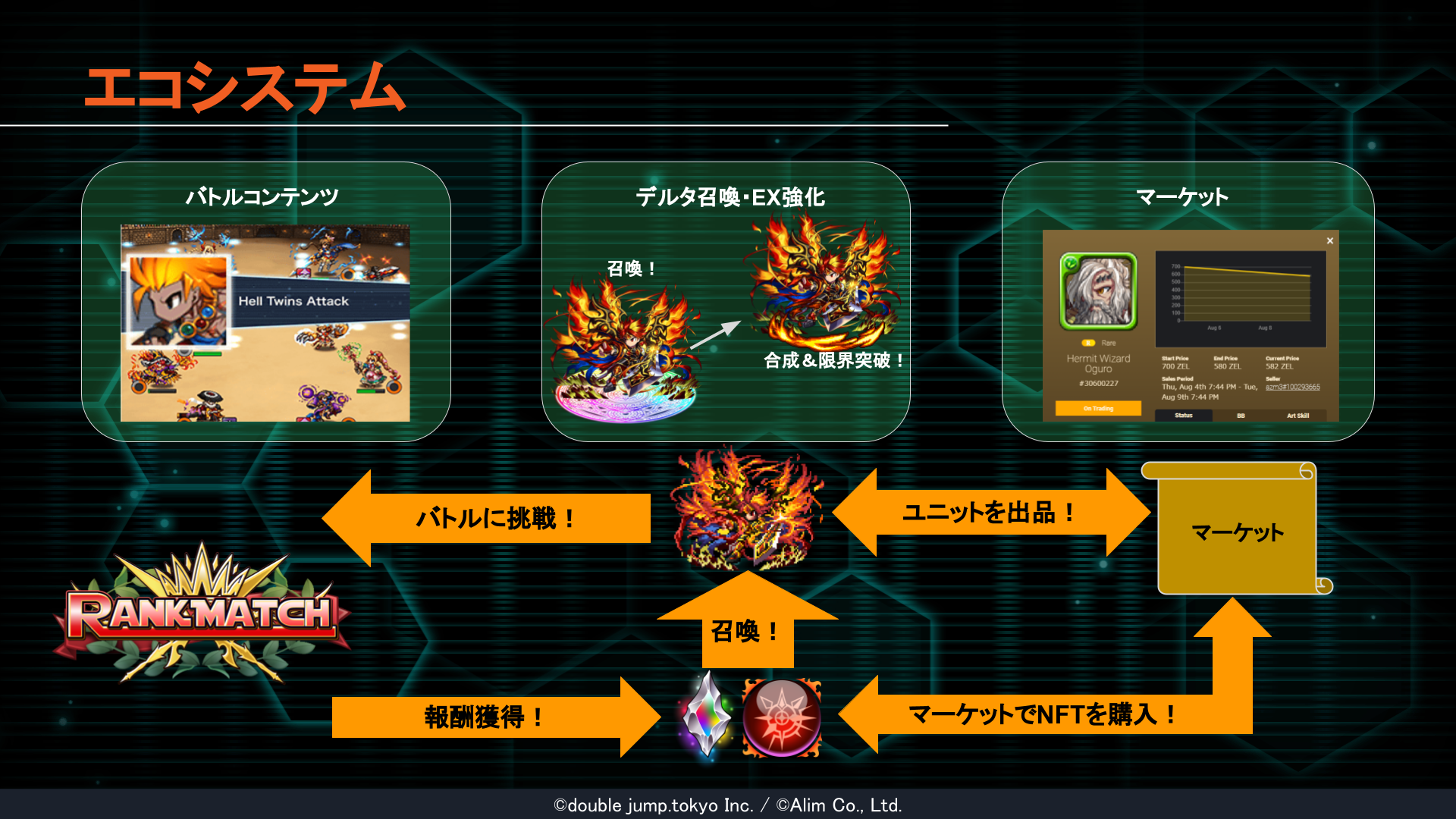 獲得したFTは、ゲームで利用可能なキャラクター(ユニット)を生成する新システム「メモリア生成」「デルタ召喚」に利用できるほか、FTを売却することも可能です。