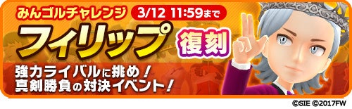 さらに同日より、強力なライバル「フィリップ」が再登場する期間限定イベント「みんゴルチャレンジ」も併せて開催いたします。