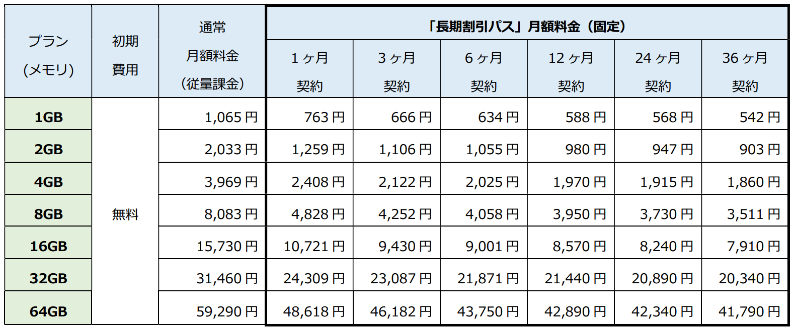 | 対 象 プ ラ ン | 「長期割引パス」の全プラン (1ヶ月 / 3ヶ月 / 6ヶ月 / 12ヶ月 / 24ヶ月 / 36ヶ月) |