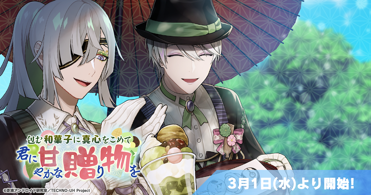 スマホゲーム『テクノロイド ユニゾンハート』にて、本日3月1日(水)17時よりゲーム内イベント「包む和菓子に真心をこめて 君に甘やかな贈り物を」が開催中です。