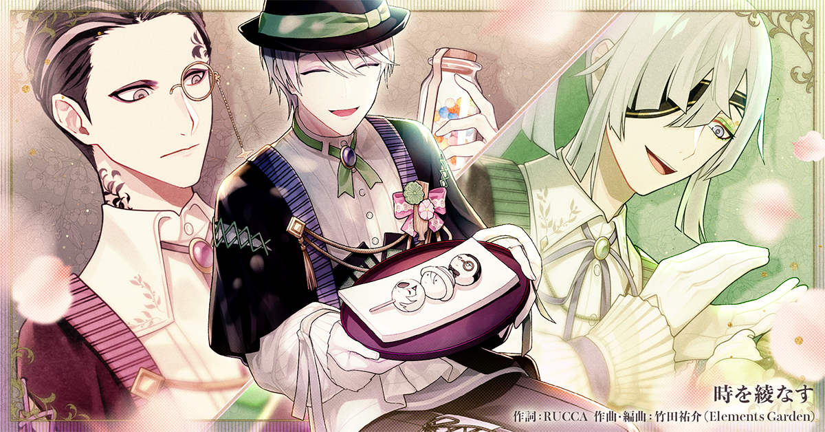 スマホゲーム『テクノロイド ユニゾンハート』にてゲーム内イベント「包む和菓子に真心をこめて 君に甘やかな贈り物を」に合わせ、『テクノロイド』内ユニット「機関紳士」よりノーベル(CV:野島健児)、ルゥマ(CV:土岐隼一)、アインザッツ(CV:熊谷健太郎)による新曲、「時を綾なす」を解禁いたします。また、同日公式YouTubeにて各楽曲のShort ver.も公開します。