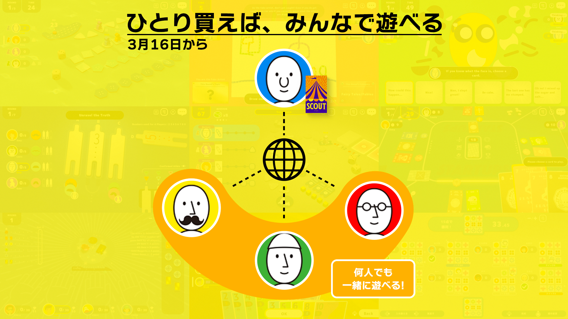 ボードゲーム業界で世界的に知名度を伸ばしているオインクゲームズのゲーム群が、ついにNintendo Switchで遊べるようになりました。「海底探険」や「エセ芸術家ニューヨークへ行く」など、オインクゲームズの人気タイトルを収録。直接会うことができなくても、ひとつのテーブルを囲んでいるかのように気軽にボードゲームが楽しめます。おうちで家族と遊ぶもよし、友達や知らない人とオンラインで遊ぶもよし。気軽に笑えるゲームから、頭を悩ませる本格ゲームまで。CPUと対戦して腕試しできるタイトルも。