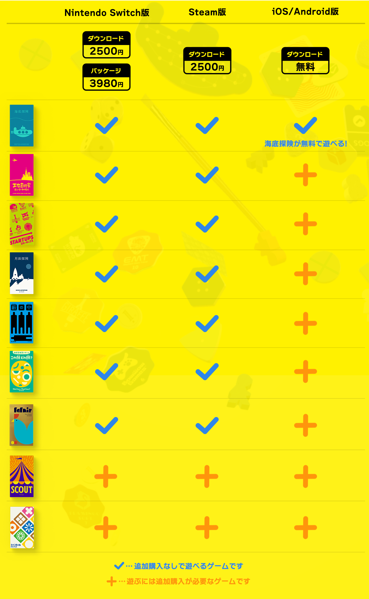 また、今回のアップデートにより、誰か1人が有料DLCのゲームを購入すれば、「レッツプレイ!オインクゲームズ」を 持っているフレンドは、DLCを購入することなく一緒に遊べるようになりました!スマホ版は無料でダウンロードできるため、誰か一人がゲームを購入すれば、他のメンバーは無料で一緒に遊べることになります。誰か一人でもSwitch/Steam版を購入している場合、収録されている7つのゲームにも無料で参加できます。