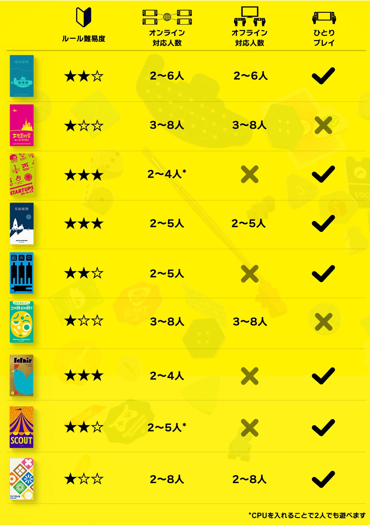 今後も追加アップデートで、遊べるタイトルがさらに増える予定です。プレイモードやプレイ人数はタイトルごとに異なります。詳細は公式ページをご覧ください。