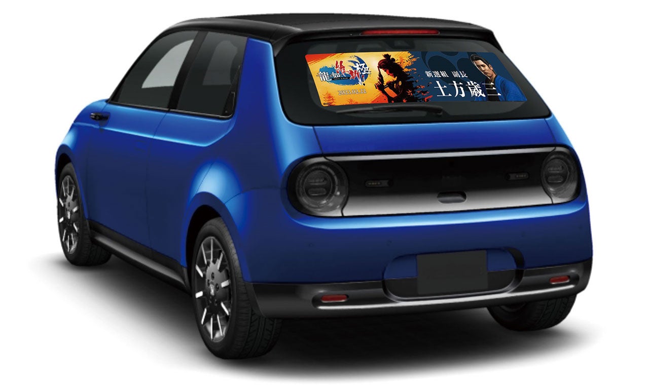 「『龍が如く 維新! 極』応援キャンペーン リア」は、『龍が如く 維新! 極』のカーステッカーを自家用車に貼ってドライブしていただき、『龍が如く 維新! 極』の発売を盛り上げる企画。カーステッカーはリアウィンドウに貼るタイプで、坂本龍馬、岡田以蔵、土方歳三、沖田総司、西郷吉之助、新堀松輔から好きなキャラクターのデザインを選ぶことができます。
