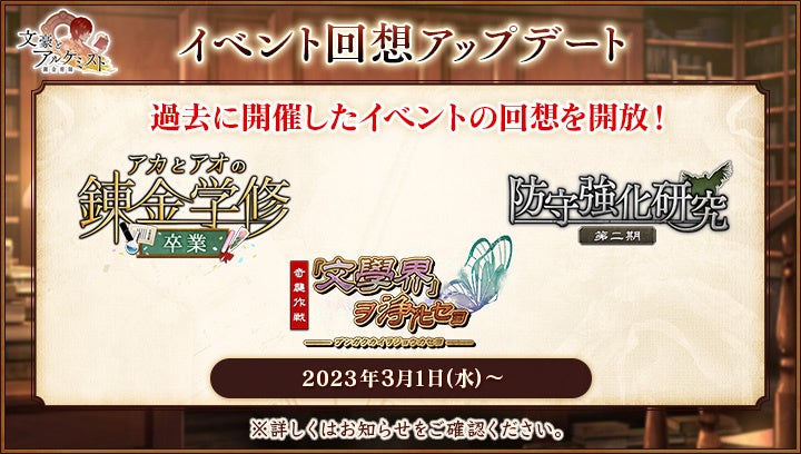 過去に開催したイベントの回想を開放いたしました。今回のアップデートでは、以下3つのイベント回想が図鑑よりいつでも確認できます。