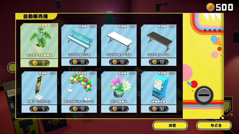 「筐体」「壁紙」「床」「インテリア」「フィギュア」「BGM」の6つのカスタマイズアイテムで、自分好みのゲームセンターにカスタマイズしましょう!
