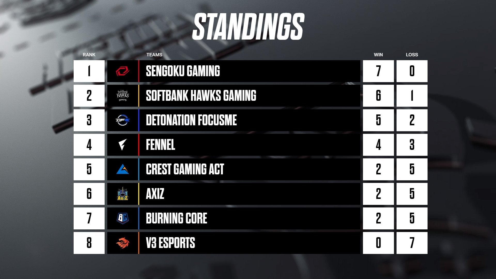 シーズン後半戦では、上位6チームが進む事の出来るプレイオフに向けて、全チームがその出場枠を争う大混戦になる事がさらに予想されます。前半戦ではどのチームも上位チームに対してBO3対戦形式での試合勝利を取得しており、今後戦術の駆け引きに注目です。