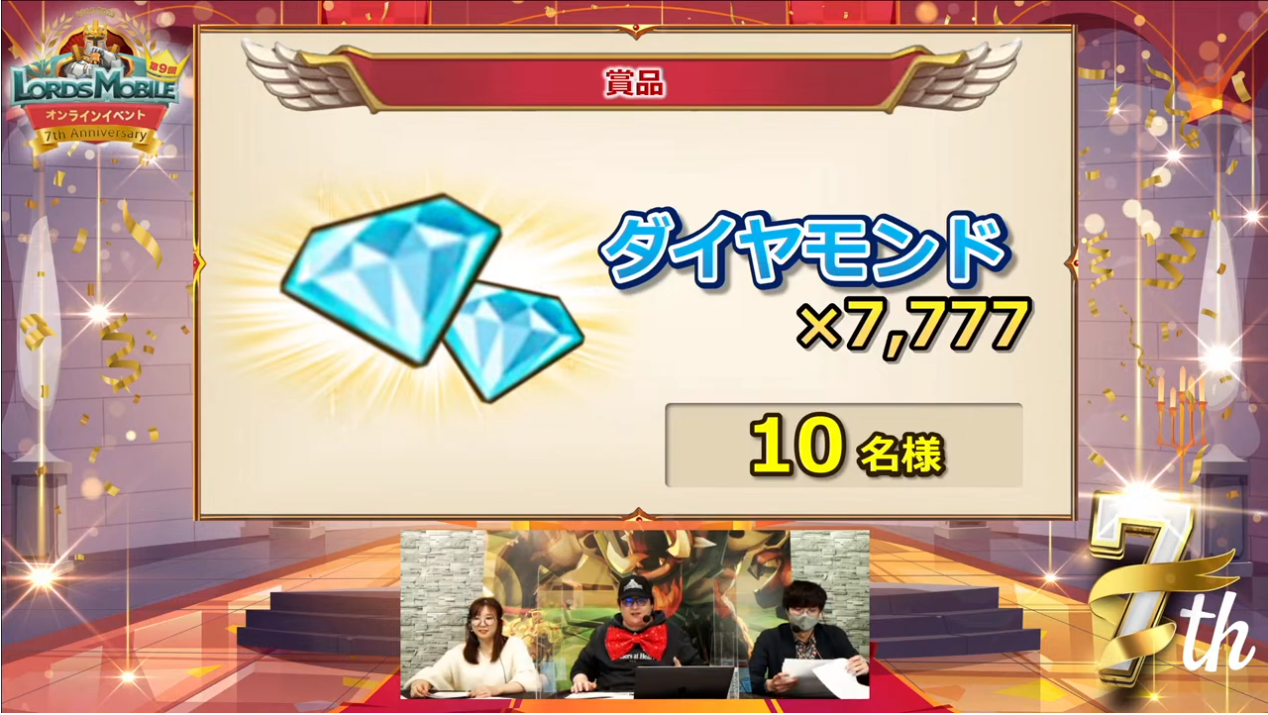 今回は7周年記念のため、「7,777」ダイヤモンドを10名様にプレゼント!