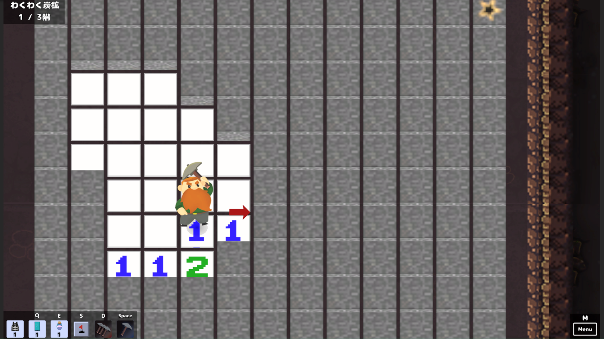 周囲の地雷の数を表す床の数字を駆使して、ブロックの中に眠る地雷を特定しよう!